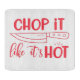 Funny cutting board; Chop It like It's Hot, in bright red color font. Can add a family name to personalize or leave it as is.
