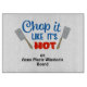 Chop it like it's hot is the text on this glass cutting board sandwiched between two meat cleavers. Cutting food stuff on this board is an exercise in humor. Just fun. Personalize it with a name -- this text indicates the owner of the board. Easily changed with the template. Be sure to scroll down to read the product description for full information. Selecting “Personalize this design” offers you several edit options to easily change the text (wording, plus type font, color, size, position) and to edit the design elements. You may also want to scroll down to the section “Transfer design to a product” for a few suggestions about other items this design can be used on.