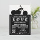 Black & White Motorcycle Biker Silhouette Wedding Invitations. A really great classy and contemporary themed offbeat wedding inviation. A great artistic invite featuring great typography in a flyer style with a custom chopper on the top with hearts. For any biker, rock n roll, or creative offbeat wedding! Stand out from the crowd with these great black and white invites! Created and copyright 2011 Julie A Farrell OddLotPaperie Designs. If you need any help customising this invite please contact me via the link in my store and I will be more than happy to help you! We can also help you create wedding programs, rehearsal dinner invitations, menu cards, escort cards, seating charts, place cards and of course the thank you cards. We are here to help you create that perfect wedding!