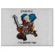 A perfect marriage of chopping board and colorful, manic clown wielding a chainsaw. Text reads: "STAND BACK... ...IT'S CHOPPING TIME!". Edit, remove or add to text if desired.
