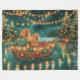 Set sail into the magic of the holiday season with this beautifully detailed illustration, showcasing a proud dog sitting in a festively decorated boat, gliding across a serene Christmas lake. The twinkling lights from nearby pine trees reflect off the water, casting a warm, festive glow that enhances the cosy ambiance. Ornaments dangle from the boat's sides, while glowing lanterns light the way, creating a scene that captures the true essence of Christmas warmth and joy. This nostalgic artwork brings a touch of holiday magic to any space, perfect for those who cherish the spirit of the season.