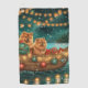Set sail into the magic of the holiday season with this beautifully detailed illustration, showcasing a proud dog sitting in a festively decorated boat, gliding across a serene Christmas lake. The twinkling lights from nearby pine trees reflect off the water, casting a warm, festive glow that enhances the cosy ambiance. Ornaments dangle from the boat's sides, while glowing lanterns light the way, creating a scene that captures the true essence of Christmas warmth and joy. This nostalgic artwork brings a touch of holiday magic to any space, perfect for those who cherish the spirit of the season.