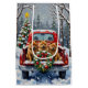 Bring dignified, lion-like charm to your holiday season with this majestic Chow Chow Christmas design! This captivating scene features three plush-coated, unique Chow Chows sitting calmly in the back of a classic red pickup truck, perfectly suited for the beautiful snowy winter forest setting. The vintage truck is adorned with a vibrant Christmas wreath, twinkling with red and gold ornaments and warm, glowing lights. Abundant snowflakes fall around the scene, truly creating a winter wonderland. With a decorated Christmas tree in the background, this design is perfect for capturing the joyful spirit of the holidays and makes an excellent Christmas gift for any Chow Chow owner, dog lover, or admirer of festive and magnificent dog art.