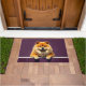 The deep plum purple background adds richness and elegance, making it a standout piece for any entryway. Designed with extra space at the top and bottom, it allows easy personalization with names, welcome messages, or custom text—perfect for unique dog-themed doormats and thoughtful gifts.