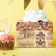 A watercolor-style painting of a cheerful dog sitting amidst a pile of vibrant fall leaves, surrounded by tiny pumpkins and scattered acorns. The dog wears a little pilgrim hat and beams with joy, capturing the spirit of Thanksgiving. In the background, soft harvest fields and golden-hued trees create a peaceful countryside ambiance. Gentle textures and warm, muted autumn tones give the scene a cosy, nostalgic feel perfect for celebrating the beauty of the season.