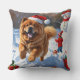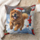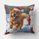 Chow Chow Running in Snow with Christmas Hat Cushion