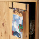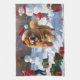 Chow Chow Running in Snow with Christmas Hat Tea Towel