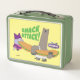 This is a standard metal lunchbox that appears to work just fine. We designed this box ourselves with an uploaded photo and custom text on the front and back. It looks absolutely beautiful except the front of the lunchbox is not centered like it shows in the photo. The print borders don't align with the inset flat part of the box where the preview photo online showed it perfectly centered in there. The back looks nice and centered though.