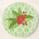 Pretty holiday stone coaster, with a green and white lattice damask pattern, with little red dot accents. Pretty graphics of a sprig of red berried holly, decorates the middle. Lovely coaster that will be a pretty addition to your coffee table during the Christmas season. Makes a wonderful gift idea too.