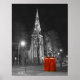 Christ Church on Turnham Green, Chiswick in black and white with red telephone boxes