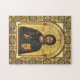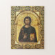 Jesus Christ Holding the Gospels within a gold, intricate latticework frame Orthodox Christian icon jigsaw puzzle.