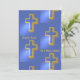 Christ is Risen Indeed Gold Christian Cross Blue Holiday Card