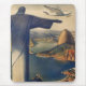Vintage illustration travel and transportation image travelling by aeroplane to Rio De Janeiro, Brazil. Flying past Christ the Redeemer, a statue of Jesus Christ.