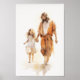 Christ with Girl Watercolor Art Print - Faceless Jesus Portrait for Inspirational Home Decor"