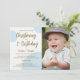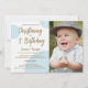 Christening 1st Birthday Photo Blue Gold Custom Invitation