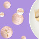 A rose gold background decorated with confetti. Personalise and add a date and name/event. Dark rose gold coloured letters. Some confetti chips with name and date, others with a cross. Add your own photo on two of the chips.