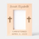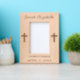 Celebrate the Sacred Moment of Christening with a Personalised Etched Frame. Capture the joy and significance of a loved one's christening with this beautiful etched wood picture frame. Thoughtfully designed to honour this special milestone, this frame is the perfect keepsake to cherish the moment forever. Add the name of the christened individual at the top of the frame for a personal and meaningful touch. The bottom of the frame is etched with the word "Christened" and includes a space to customise the date of this sacred event. A simple, timeless cross is etched into the frame, symbolising faith and spiritual grace. Perfect for Christening gifts for babies, children, or adults , Keepsakes for godparents, grandparents, and sponsors Display this frame in a nursery, living room, or special place in your home to keep the memory of this blessed day alive. Edit text from the product page or to change font style, use the design tool.