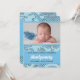 Blue, white and brown with polka dot swirls and baby's photo for boy's christening.