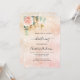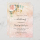 A rose gold and blush pink gradient background decorated with eucalyptus greenery, a rose gold and blush pink rose, and golden leaves and faux silver glitter drops. Personalise and the childs name and ceremony details.