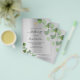 A modern, elegant baptism, christening invitation, gender neutral. Faux silver metallic looking background decorated with eucalyptus greenery, sprigs. Personalise and add a name and details. Black coloured letters.