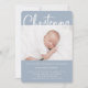 This simple and stylish Christening invitation features two photos of your baby, with elegant modern white typography on a soft blue background.