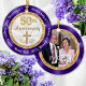 Stunning PHOTO and Personalised, 50th Wedding Anniversary Christmas Ornament. Awesome, 50th anniversary party favours for guests or cheap 50th anniversary gifts. Personalised 50th anniversary ornaments are for ANY OCCASION. Nice and inexpensive, Golden wedding anniversary gift. Stunning Purple and Gold, 50 year anniversary ornament.