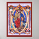 Medeival Christian art Christ in Majesty painting from the Illustrated Manuscript Codex Bruschal shows Jesus Christ on His throne as ruler of the world, surrounded by animal emblems representing the Four Evangelists. German, early 13th Century.