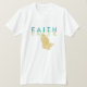 Christain shirt shown in a crew neck and short sleeves style in white also available in a slug of colours for you to choose from, this Bella Canvas t-shirt made of quality materials and craftsmanship. Shown in White with Teal & Green text and has "Faith" written in double manner in centre of chest. Customise to your size, colours, add images change text to your liking; Or buy as is.