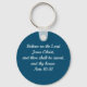 This Christian inspiration keychain features a solid ocean-blue background, and a verse from the Bible. "Believe on the Lord Jesus Christ, and thou shalt be saved, and thy house. Acts 16:31" is written in white lettering.