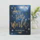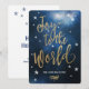 A very stylish Christian Christmas Card with golden typography "Joy to the World the Lord has come!". All text is editable. With a blue stylish space with stars background and little white stars around the golden text. An original religious Christian greeting card design by Luckz.