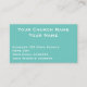 Customise this card with your Church's contact information or Pastor's information. You can personalise all the white text on this minimalistic modern aqua turquoise green card. You can add your church's or organisation name in clear simple white text. You can add your name, address, email and website in clear script. The back side is solid minimalistic turquoise with white script where you can add a Bible Verse, word or hope, Salvation message or other information for your church meeting or special event.