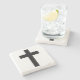 This design features the Christian cross, which is seen as a representation of the instrument of the crucifixion of Jesus. The cross is perhaps the best known symbol of Christianity. It is related to the crucifix (a cross that includes a corpus, usually a three-dimensional representation of Jesus' body). The basic forms of the cross are the Latin cross with unequal arms (✝) and the Greek cross (✚) with equal arms, as well as numerous other variants.