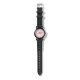 This watch features a Christian cross in the centre that is pink and white with pink roses in the centre. The background of the face is pink with white markings and numbers for the time. The perfect gift for religious occasions like first communion. Designed by artist ©Susan Coffey.