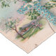 Decorate your Christian Easter table with this vintage style Christian Easter table runner. Featuring a cross formed from blue flowers, these blue flax flowers represent domestic life. There is a spring homestead scene in the background. Old fashioned print says: Hearty Easter Greetings, With kind Regards and all Good Wishes.