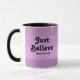 This cute mug features purple stripes along with a Bible verse from the Gospel of Mark.