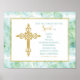 This Christian art print is designed with an outer border design of green and blue watercolors, trimmed in gold-colored ink to frame in the ornate gold look Cross that is printed on the left side, with the NKJV Bible verse from Galatians 5:22-23 that says: "But the fruit of the Spirit is Love, Joy, Peace, Longsuffering, Kindness, Goodness, Faithfulness, and Self-control" on it.