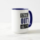 Go hard for your Lord while representing your gangsta-level commitment to abide in the teachings of Jesus Christ with this navy blue combo coffee mug displaying a clever twist on the iconic "Straight Outta Compton" album cover design. Let "the streets" know about what truly (and eternally) matters. Perfect for gifting to fellow bible study group members!