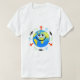 Cartoon world globe character surrounded by Christian symbols - cross, holy bible, dove and fish symbol.
