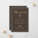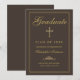 Send your family and friends an elegant Christian graduation announcement featuring a brown background with faux gold calligraphy and cross bordered by a thin gold frame. Personalise with your graduation details. Designed by Susan Coffey.