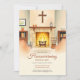 Celebrate a new beginning with this Christian housewarming invitation featuring a cosy living room scene with a glowing fireplace and cross. A perfect choice for hosting a heartfelt dinner party in your new home surrounded by faith, family, and friends.