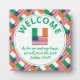 This WELCOME PLAQUE would make a great addition to your hallway, reception or living room decor. The design shows the flags of IRELAND and the USA in a tiled pattern. At the centre, there is a small map outline of the country with curved text that says WELCOME. This text is customisable, so you can change to your own greeting in your own language, or to your name. At the bottom there is a Scripture verse from Joshua 24:15 - "As for me and my house, we will serve the LORD." This text is also customisable, so you can replace with your own favourite Bible verse, motto or inspirational message. This WELCOME PLAQUE would make a wonderful gift for Newlyweds, New Home, New Christians, for Birthdays, Christmas, New Year, and throughout the year. This would look good in private homes and public places, such as restaurants, wine bars, cultural centres, embassies, schools, churches, etc - anywhere with an IRISH-AMERICAN-themed decor or influence. Matching items can be found in the IRISH-AMERICAN Collection, so you can create some awesome gift sets.