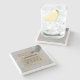 The coasters are gorgeous, a quality feel and heavy weight. They look like a precious archeological find. A rustic stone juxtaposed with a modern floral black and white print. I like the way the print goes slightly imperfect on the cut stone edges giving them a kind-of natural beauty.