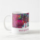 Stylish, Christian COFFEE MUG showing the abstract design of pinks and blues in the background. The word JESUS is written in white, wrapping around the mug, and this text is CUSTOMIZABLE. Beneath, there is a placeholder text which is also CUSTOMIZABLE, so you can change it and ADD YOUR NAME or favourite Scripture. This mug would make a great gift for Christmas, Birthdays, Mother's Day, Father's Day, etc. Matching items are available in the ABSTRACT Collection.