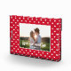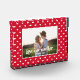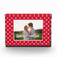 I made a simple yet modern design for a wedding keepsake. A red background with small white hearts surrounding a photo template for the bride & groom's photo. The bible verse from 1 John 3:23, "love one another," is across the front of the photo. This would make a lovely wedding, anniversary, or Valentine's gift.