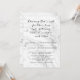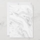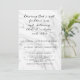 An elegant Christian wedding invitation featuring a beautiful opening in black script font - Desiring God's will for their lives and believing that it includes each other, classic serif font, all on a white and grey marble background.