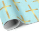 Christian Pattern Faux Gold Foil Cross Blue Wrapping Paper