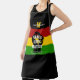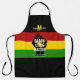 Stylish Christian Scripture Apron with motivational message saying BLACK LIVES MATTER - ALL ONE IN CHRIST, which is based on the Bible verse from Galatians 3:28-29, which says 'There is no Jew nor Gentile, slave nor free... for you are all one in Christ Jesus.' . Black power fist motif is set against red, yellow and green panels, with white typography. The background is BLACK. There is a CUSTOMIZABLE monogram and placeholder name at the top, and the Bible verse is also customisable so you can personalise with wording of your own choice. Other colour versions are available.