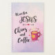 This is a Unique "One of a Kind" Christian Planner! It Features the Comical Christian Quote..."I Run On Jesus, Chaos and Coffee"... and a Beautiful Mug of Hot Coffee Surrounded by Flowers and Hearts!