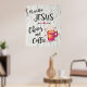 Brighten Your Home with this Unique "One of a Kind" Christian Poster! It Features the Comical Christian Quote..."I Run On Jesus, Chaos and Coffee"... and a Pink Coffee Mug with Steaming Hot Coffee...Surrounded by Colourful Flowers and Hearts!
