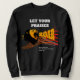 Christian PRAISES ROAR Lion unisex sweatshirt, with CUSTOMIZABLE TEXT, based on the Bible verse from Psalm 47:1 - 'Shout unto God with the voice of triumph'. The design shows the roaring head of a lion, and the wording LET YOUR PRAISES ROAR. In the background are musical staves. The main colour scheme is red, yellow and white. At the bottom, I've put the Scripture verse for Psalm 47:1 which is CUSTOMIZABLE so you can add your name, the name of your worship band or team, your favourite Bible verse or create your own text. Or you can simply delete this text. This would be a great gift to any Christian who loves to warfare in praise and worship.